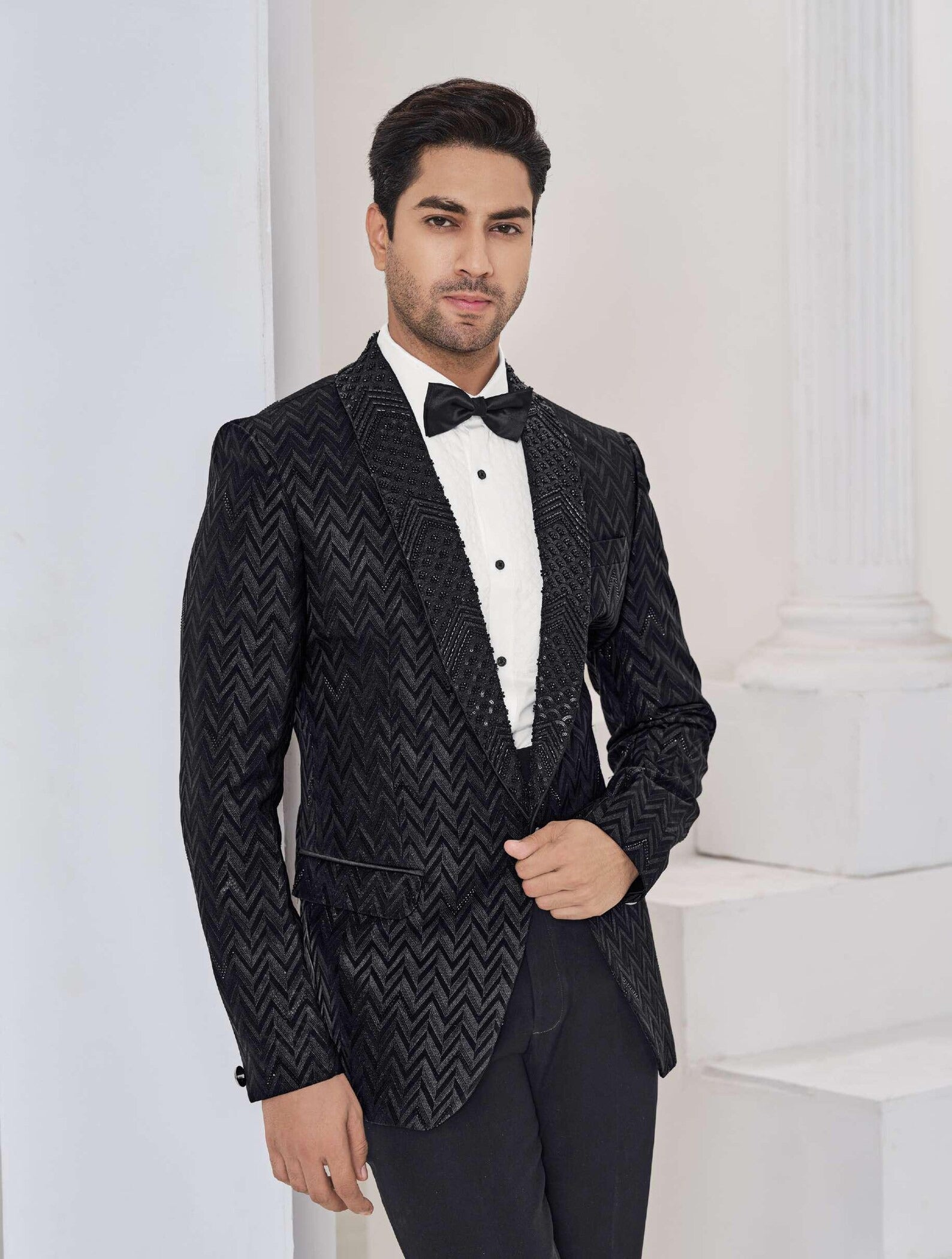 Black Embroidered Luxurious Designer Fabric Tuxedo Coat Pant, Design for Formal Events, Ideal Unique Gift, Groom's Wedding Wear