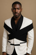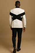 Designer White Shoulder Overlap Coat Pant Formal Fashion Wedding 2 Piece Groom Party Wear Coat Pant Suit For Men.