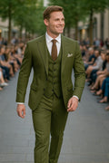 Green Wedding Suit Stylish Men's Slim Coat Tuxedo Jacket Vest with Pants for Groomsman Gifts & Dinner Party Wear Prom Suit