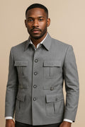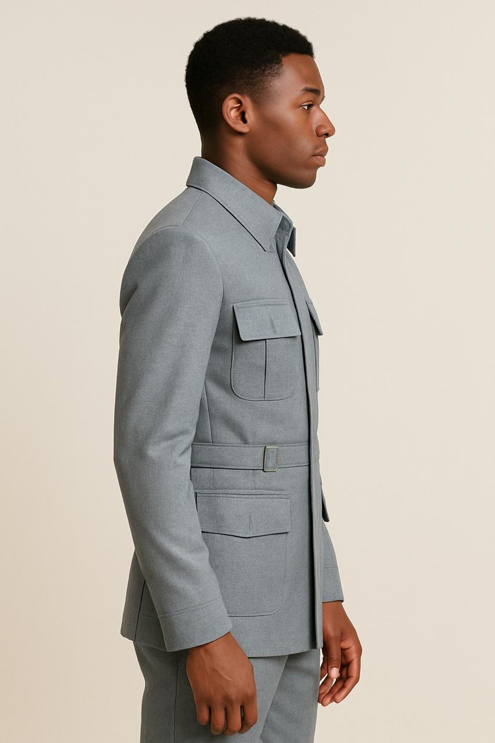 Grey Hunting Style Safari Suit Coat Pants for Men