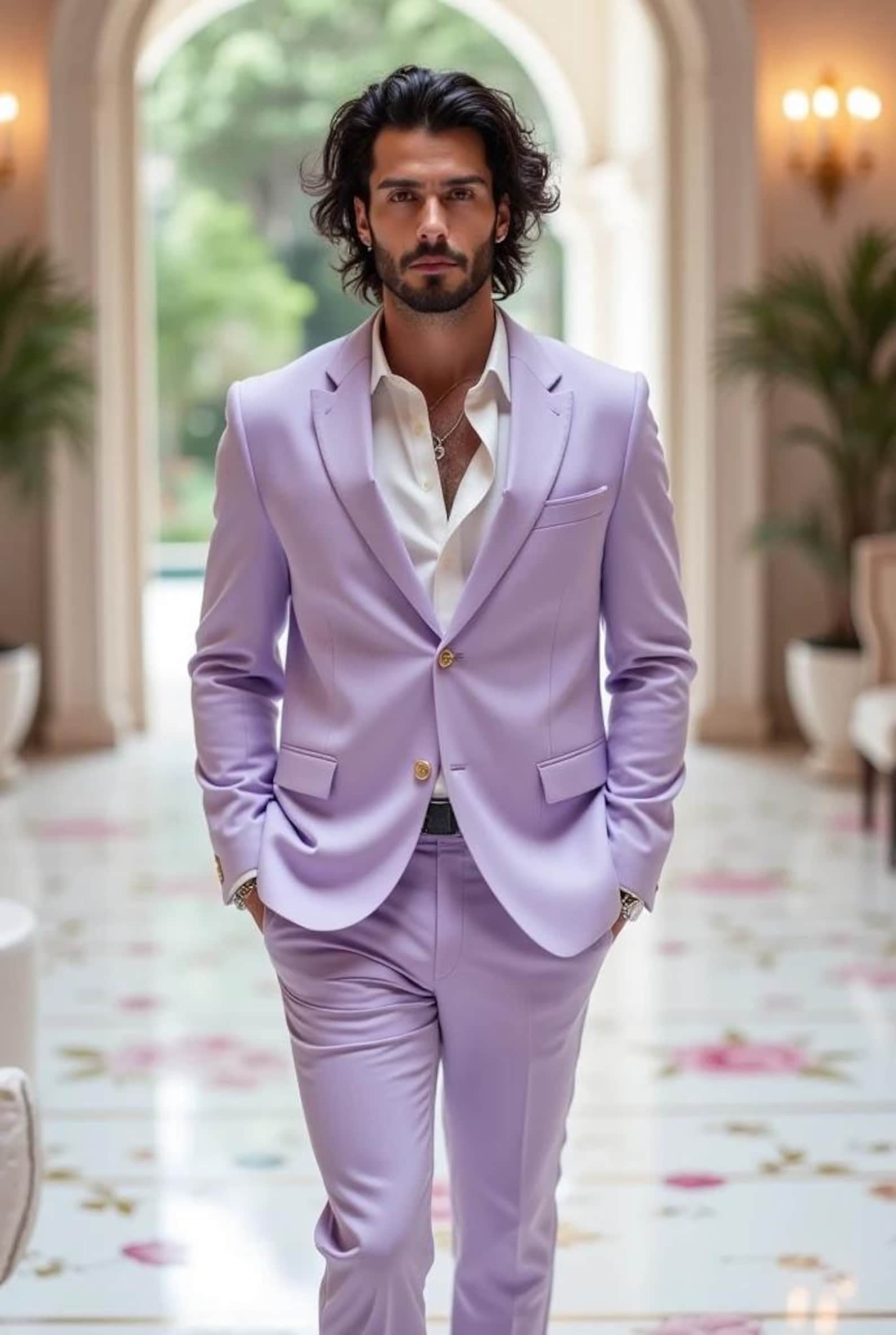 Make a bold and elegant statement on your special day with this Lavender Slim Fit Tuxedo Suit, designed to turn every head in the room. From grooms and groomsmen to prom night and party wear, this suit blends luxury, comfort, and confidence.