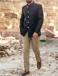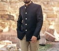 Madhu Couture Designer Black Bandhgala Jodhpuri Self Design Work Party Wear Wedding Suit for Men.