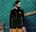 Madhu Couture Designer Black Velvet Coat Bandhgala Jodhpuri Self Design Work Party Wear Wedding Suit for Men.