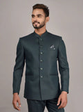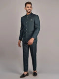 Madhu Couture Green Coat Pant Indian Designer Partywear Ethnic Black Bandhgala Jodhpuri Suit For Men.