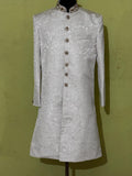 Madhu Couture Groom White Self Design Wedding Sherwani Indian Stylish Ethnic Traditional Partywear Marriage Indian Outfit For Men.
