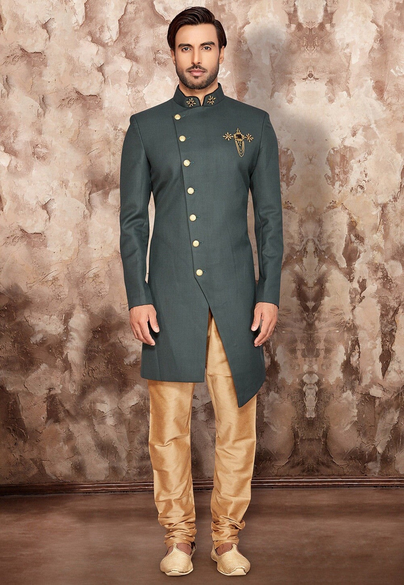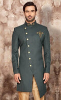 Madhu Couture Indian Ethnic Designer Partywear Bottle Green Embroidered Sherwani for Men.