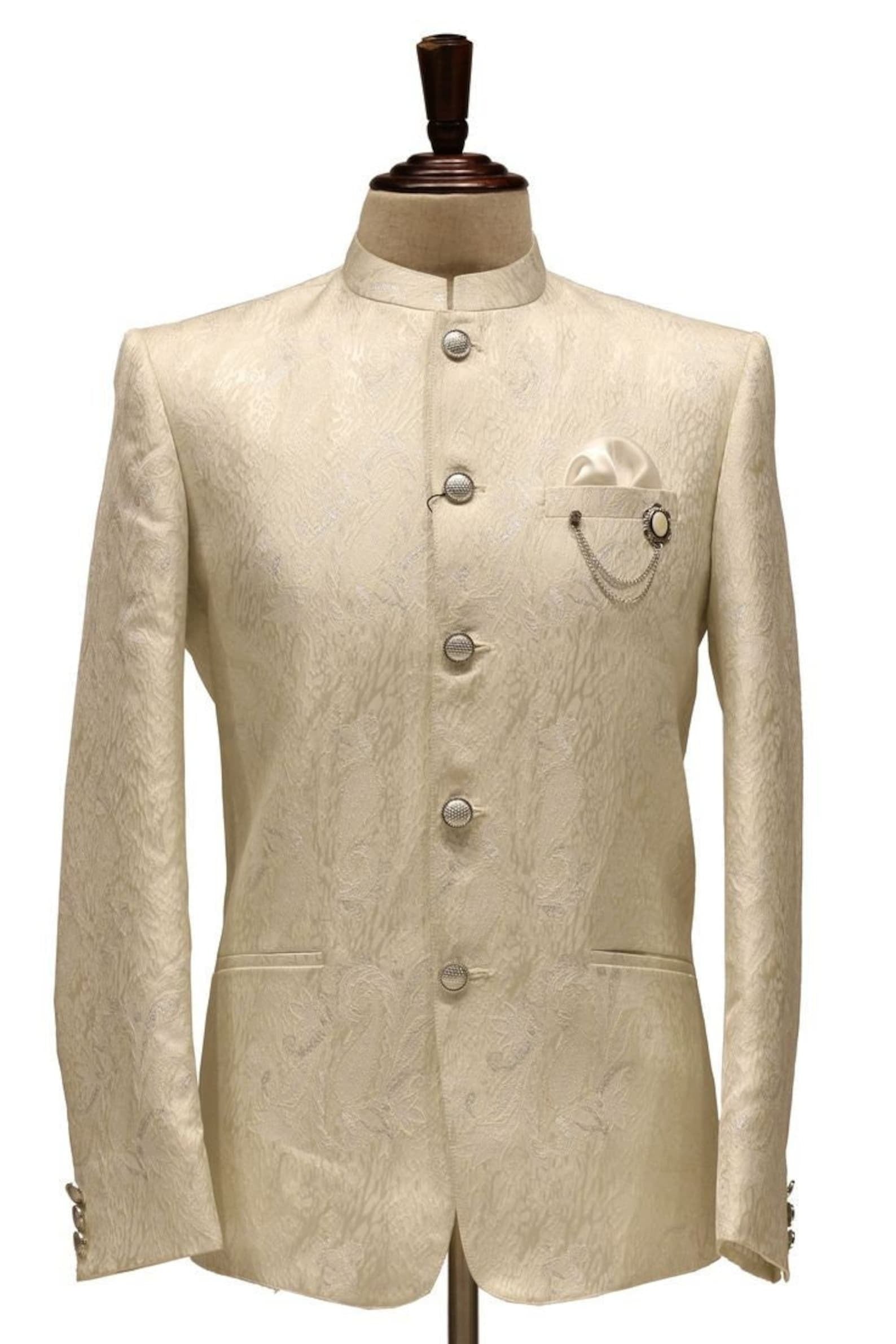 Madhu Couture Indian Stylish Ethnic Partywear Designer ivory Color Jodhpuri Suit For Men.