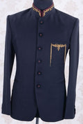 Madhu Couture Indian Zari Embroidered Jodhpuri Bandhgala Navy Blue Designer Wedding For Men.