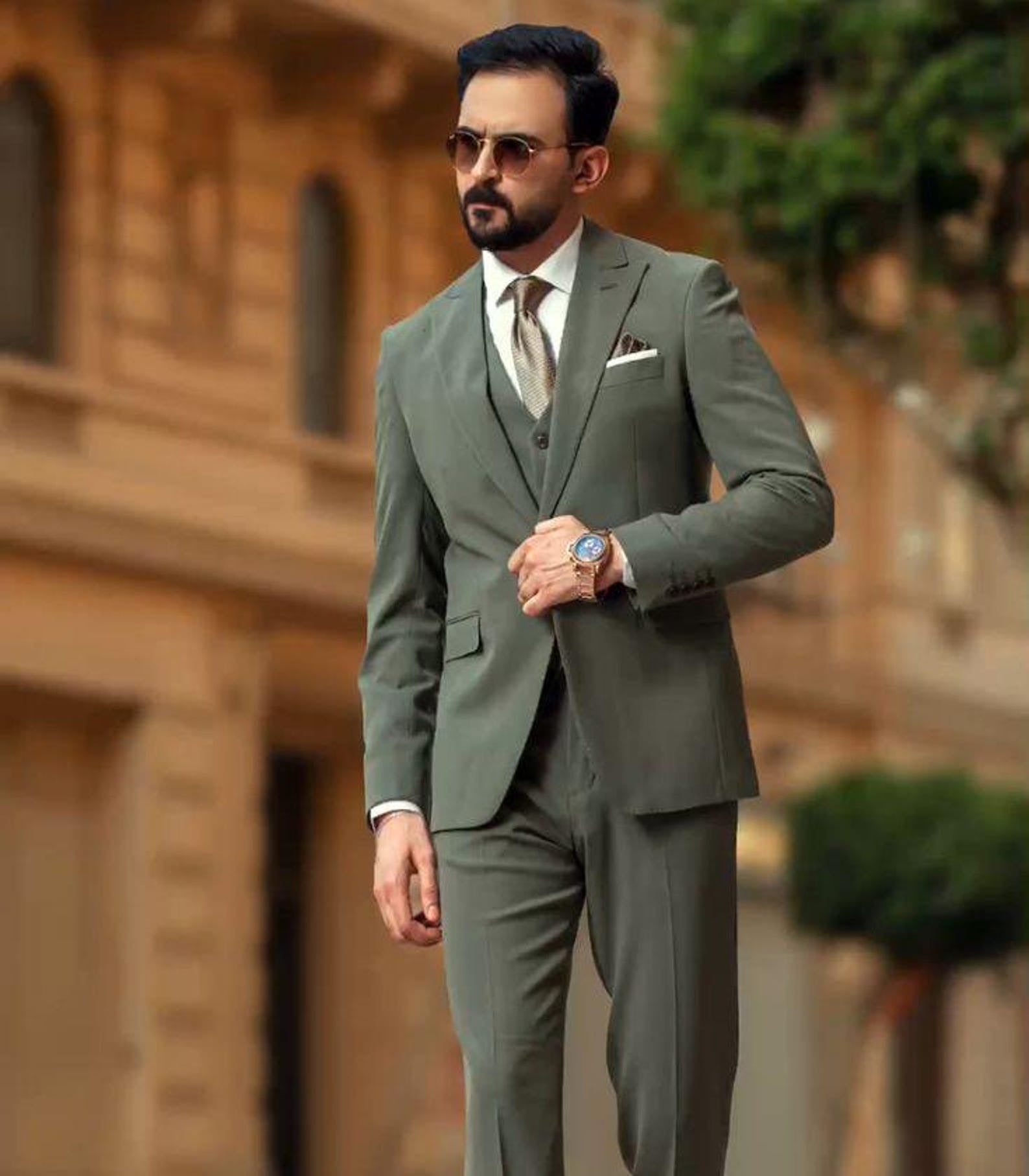 Madhu Couture Olive Green Men's Suits Slim Fit Suits 3 Piece Wedding Suits Stylish Suits Dinner Party Wear Suits Gifts For Him