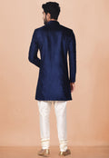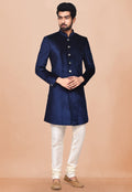 Sherewaniformen Indian solid Designer Navy Blue Color Banarasi Partywear Traditional Sherwani Outfit For Groom.